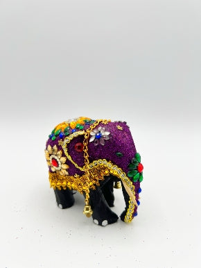 The Majestic Ebony figurine features a beautifully crafted black elephant adorned with intricate patterns, symbolizing strength and wisdom in a stunning artistic form.